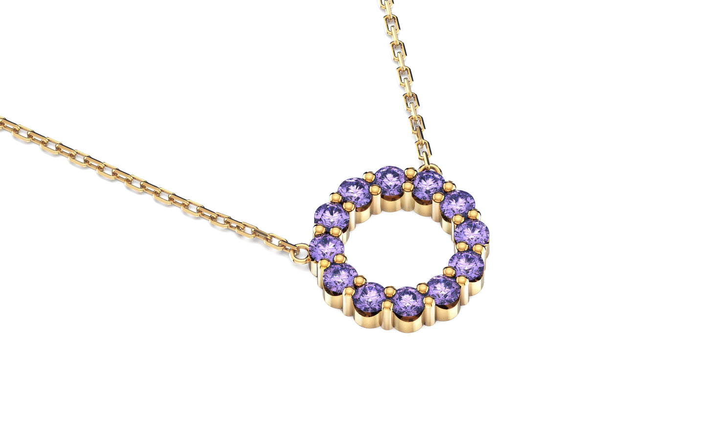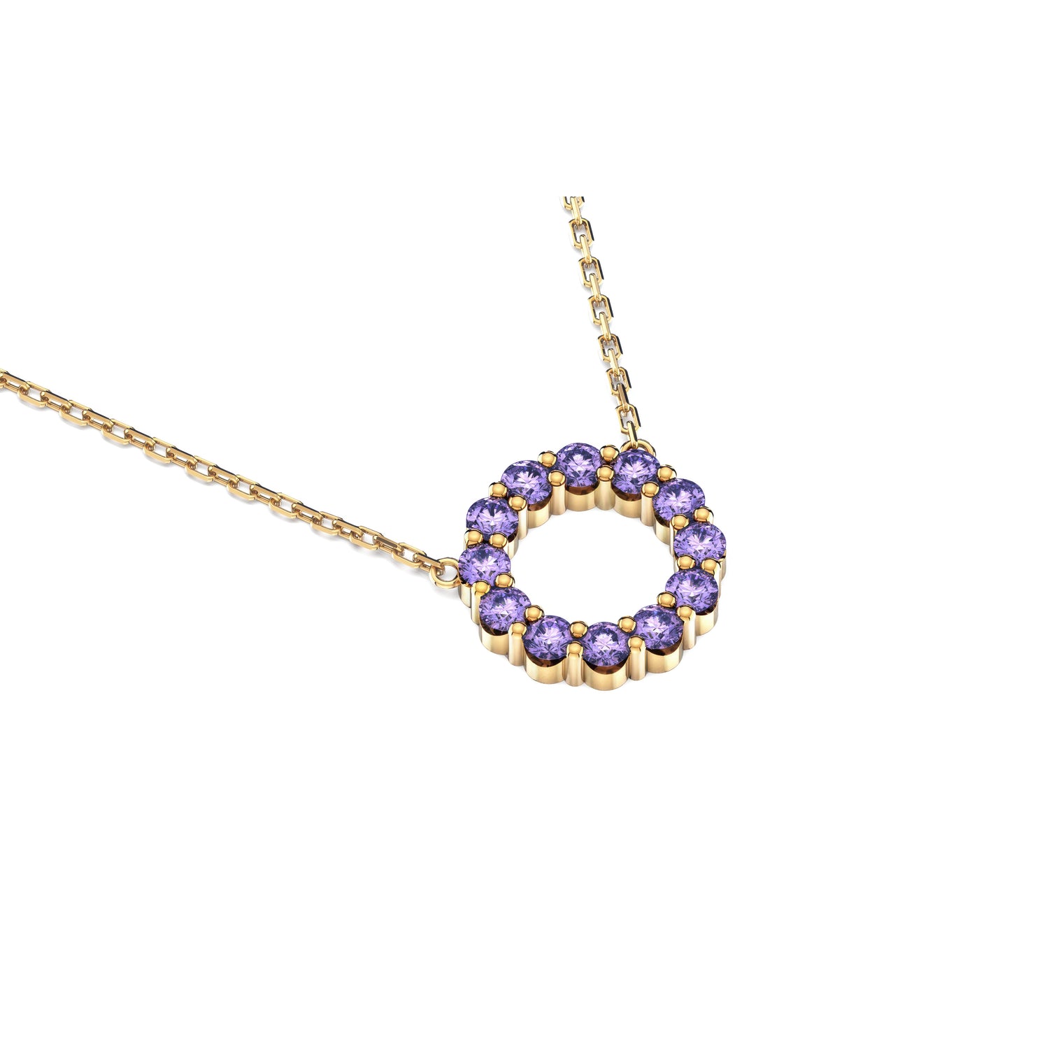 The Aleksandra necklace is your new must-have classic. This beautiful piece is designed to make you feel good every time you put it on. It features a continuous circle of sparkling Amethyst, the traditional birthstone for February — a timeless symbol of sobriety and spiritual growth. Expertly set in 14k Yellow, White, or Rose Gold, it's the perfect piece: gorgeous enough to wear solo, and simple enough to layer with your other beloved necklaces.