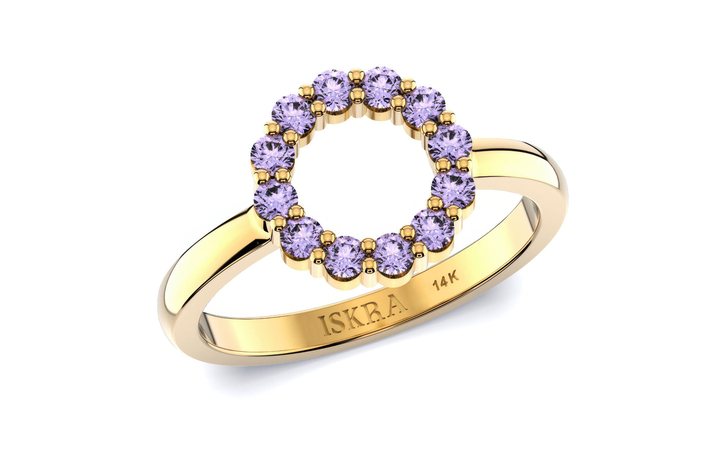 Meet the Aleksandra ring — a modern classic featuring a continuous circle of sparkling Amethyst, the traditional birthstone for February. This beautiful piece is a timeless symbol of sobriety and spiritual growth. Expertly crafted in 14k Yellow, White, or Rose Gold, it's designed to be the perfect foundation for your ring stack.