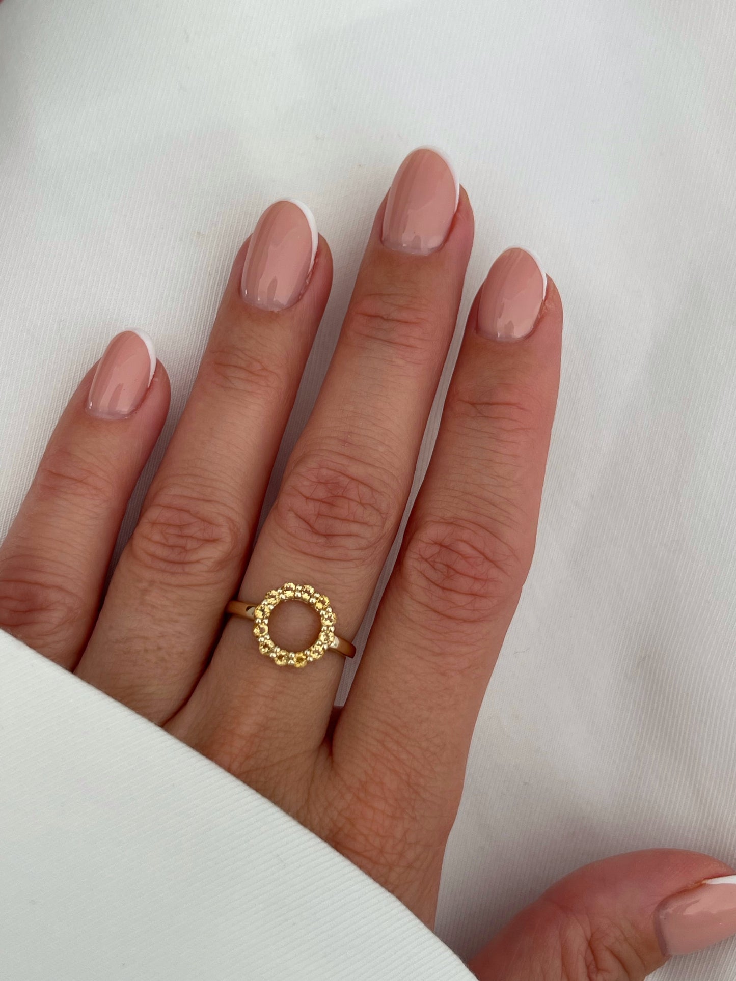 Meet the Aleksandra ring — a modern classic featuring a continuous circle of sparkling Citrine, the traditional birthstone for November. This beautiful piece is a timeless symbol of abundance and personal power. Expertly crafted in 14k Yellow, White, or Rose Gold, it's designed to be the perfect foundation for your ring stack.