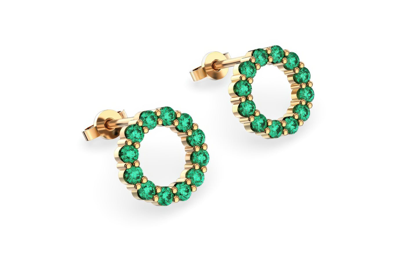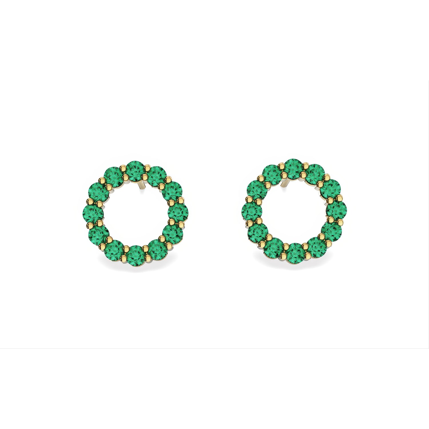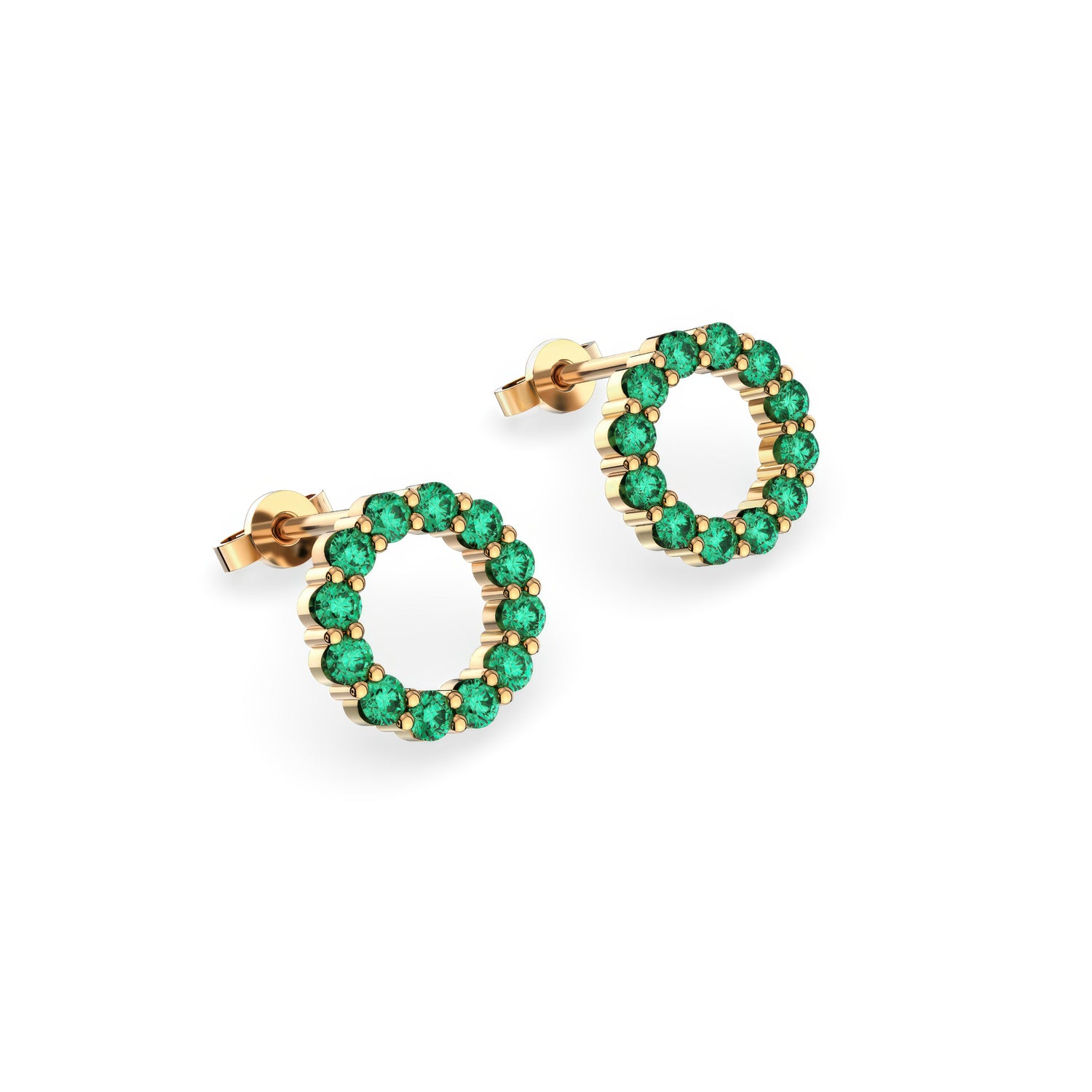 • Each earring features twelve sustainably grown round-cut emerald stones.