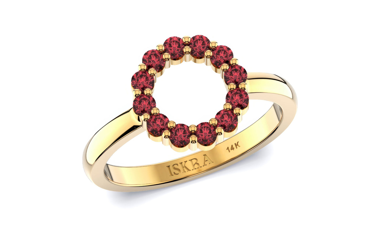 Meet the Aleksandra ring — a modern classic featuring a continuous circle of sparkling Garnet, the traditional birthstone for January. This beautiful piece is a timeless symbol of devotion and courage. Expertly crafted in 14k Yellow, White, or Rose Gold, it's designed to be the perfect foundation for your ring stack.