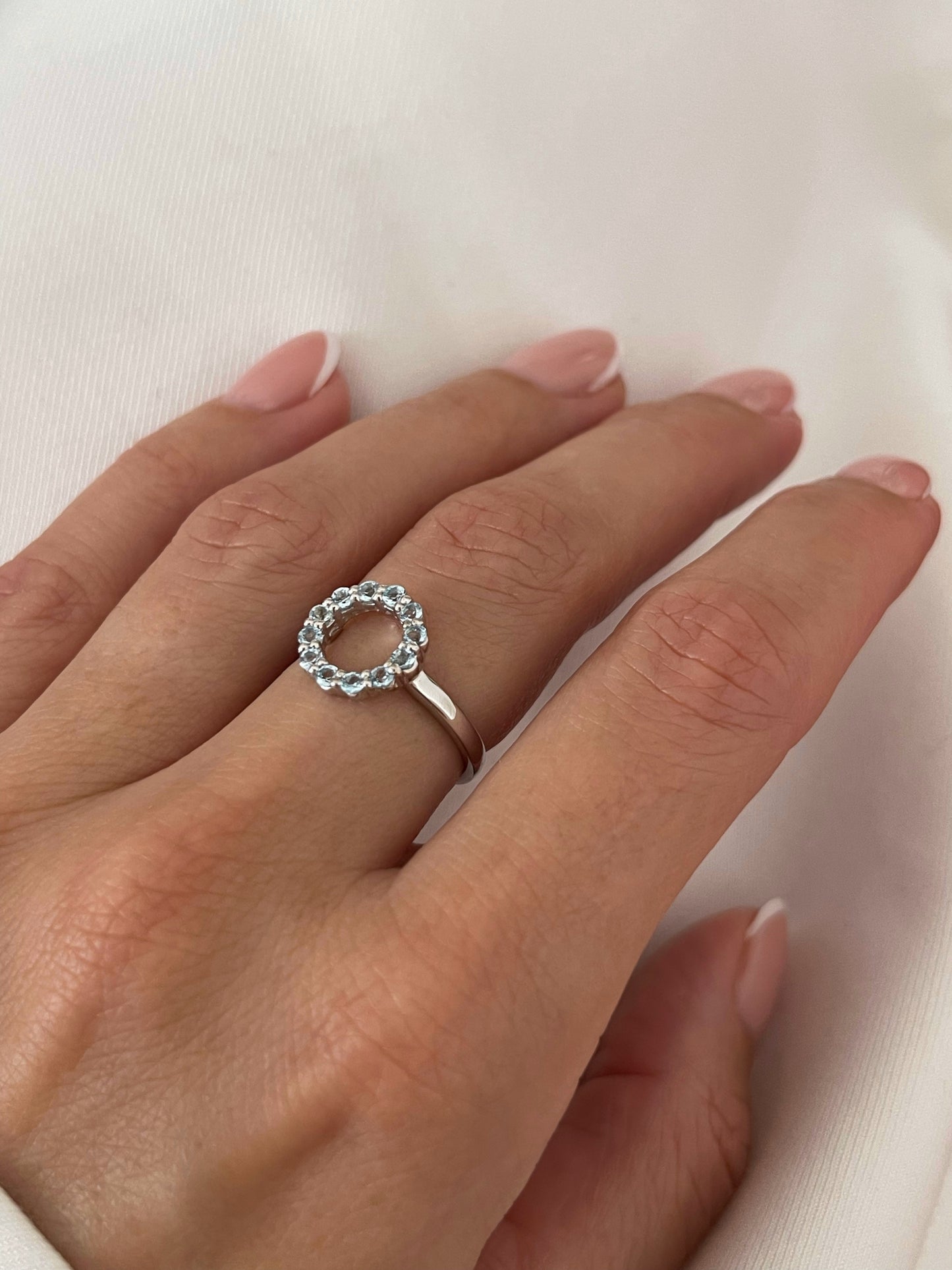 Meet the Aleksandra ring — a modern classic featuring a continuous circle of sparkling Blue Topaz, the traditional birthstone for December. This beautiful piece is a timeless symbol of calm and clear communication. Expertly crafted in 14k Yellow, White, or Rose Gold, it's designed to be the perfect foundation for your ring stack.