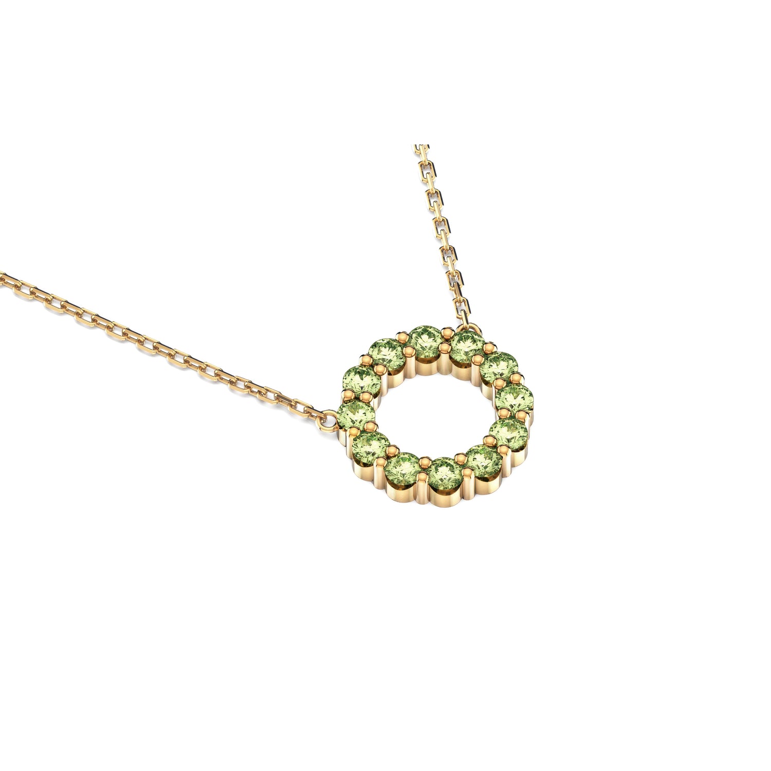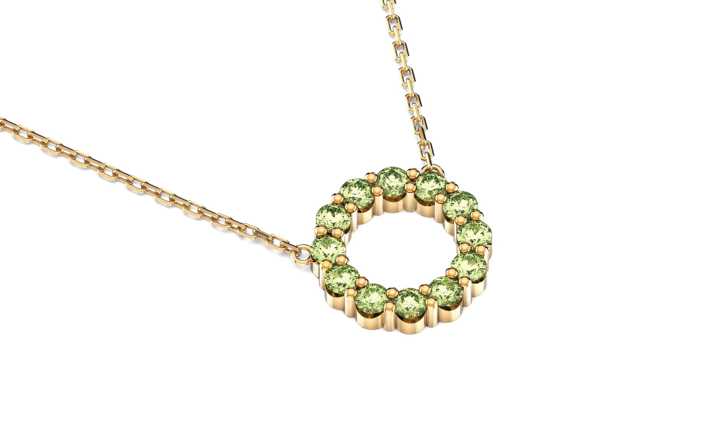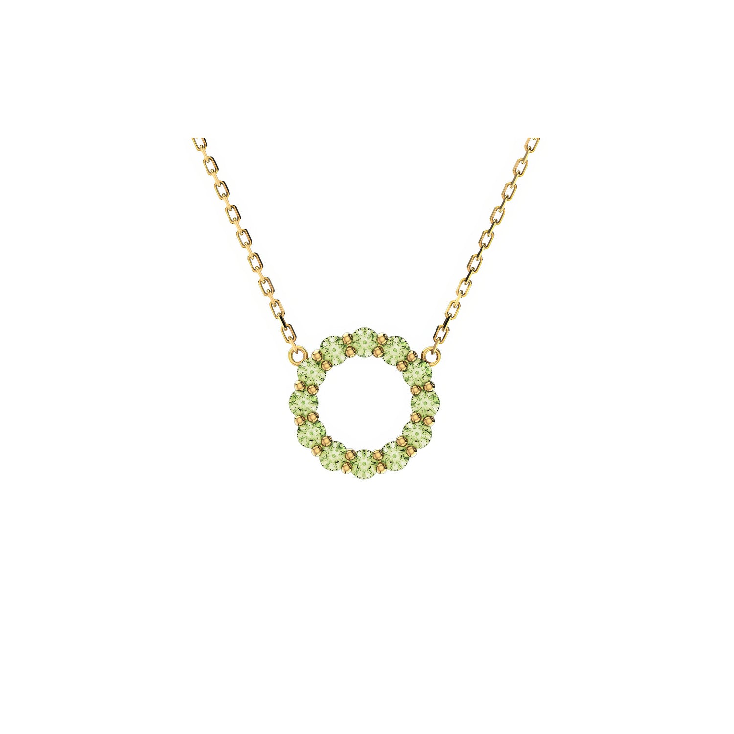 The Aleksandra necklace is your new must-have classic. This beautiful piece is designed to make you feel good every time you put it on. It features a continuous circle of sparkling Peridot, the traditional birthstone for August — a timeless symbol of protection (against negative energy) and prosperity. Expertly set in 14k Yellow, White, or Rose Gold, it's the perfect piece: gorgeous enough to wear solo, and simple enough to layer with your other beloved necklaces.
