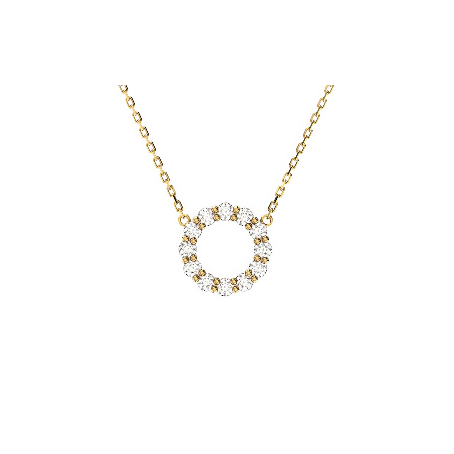 The Aleksandra necklace is your new must-have classic. This beautiful piece is designed to make you feel good every time you put it on. It features a continuous circle of sparkling White Topaz, the traditional birthstone for April — a timeless symbol of clarity and inner truth. Expertly set in 14k Yellow, White, or Rose Gold, it's the perfect piece: gorgeous enough to wear solo, and simple enough to layer with your other beloved necklaces.