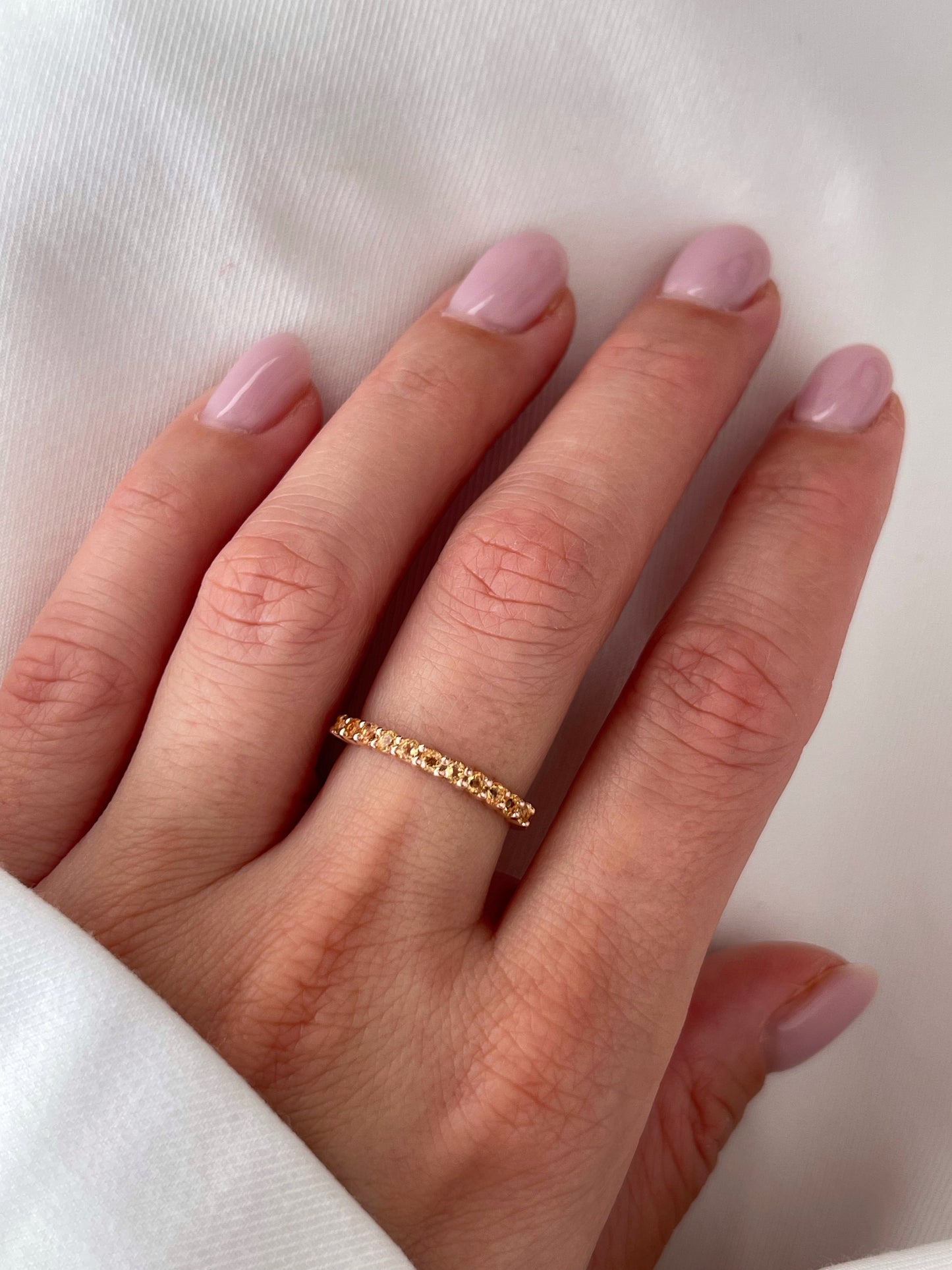 A simple design with deep meaning. The Ariana band ring features the vibrant Citrine — the birthstone for November — and a universal symbol of abundance and personal power. Expertly set in 14k Yellow, White, or Rose Gold, this ring is a meaningful birthstone gift that she can wear daily, whether stacked or solo.