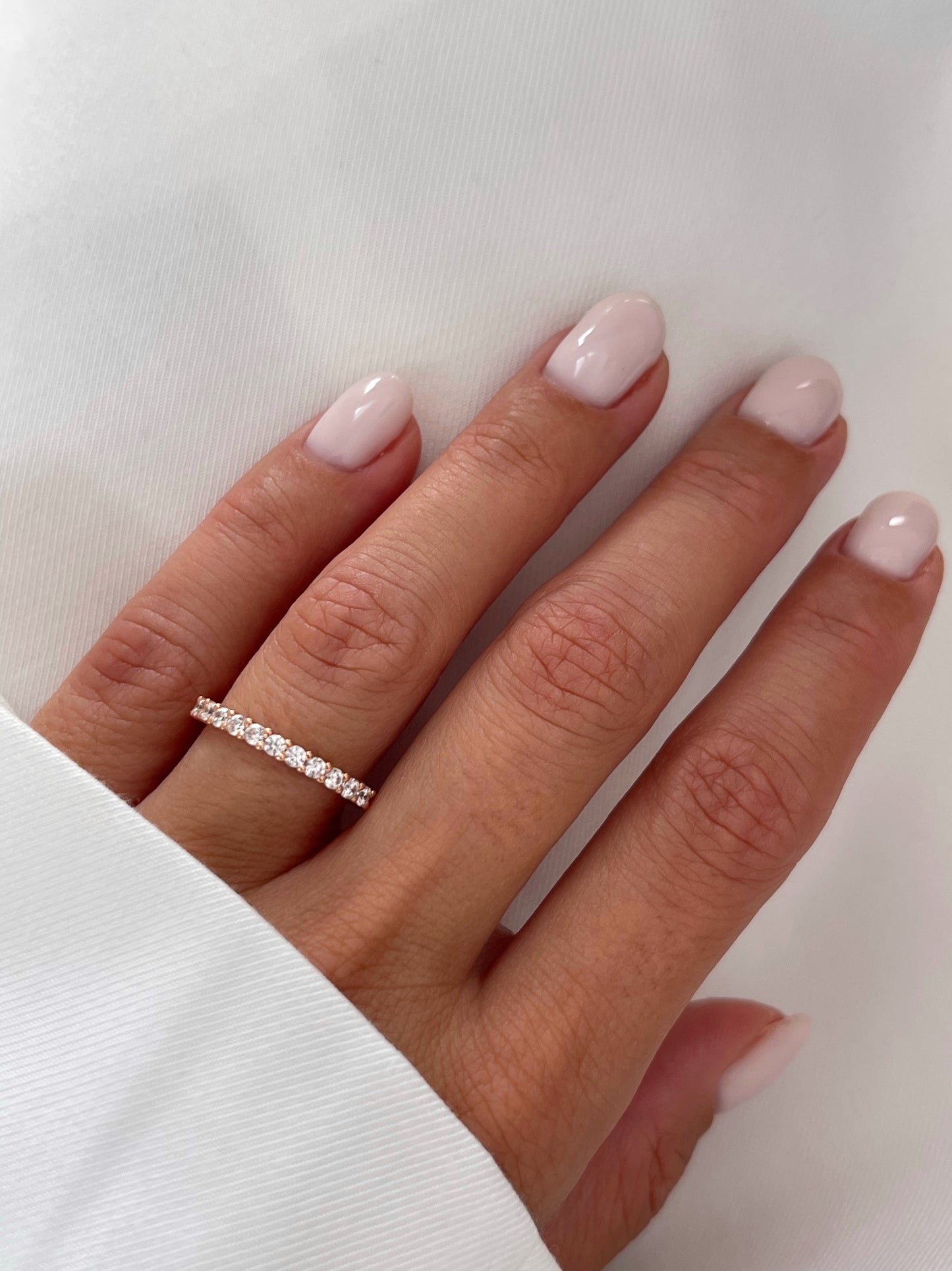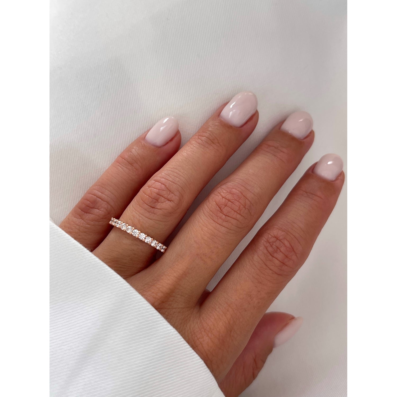 Rose gold also contains 58.5% gold and 41.5% alloy. It achieves its rose hue from the specific metals used in the alloy. This makes rose gold the most durable and scratch-resistant option. It is a perfect choice for pieces subject to high wear, such as wedding and engagement bands, as the alloy's strength provides superior longevity.