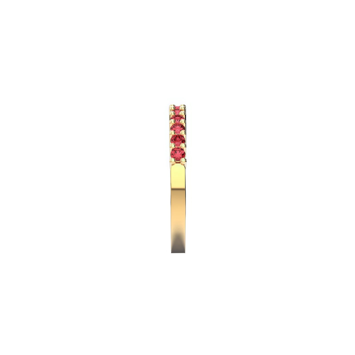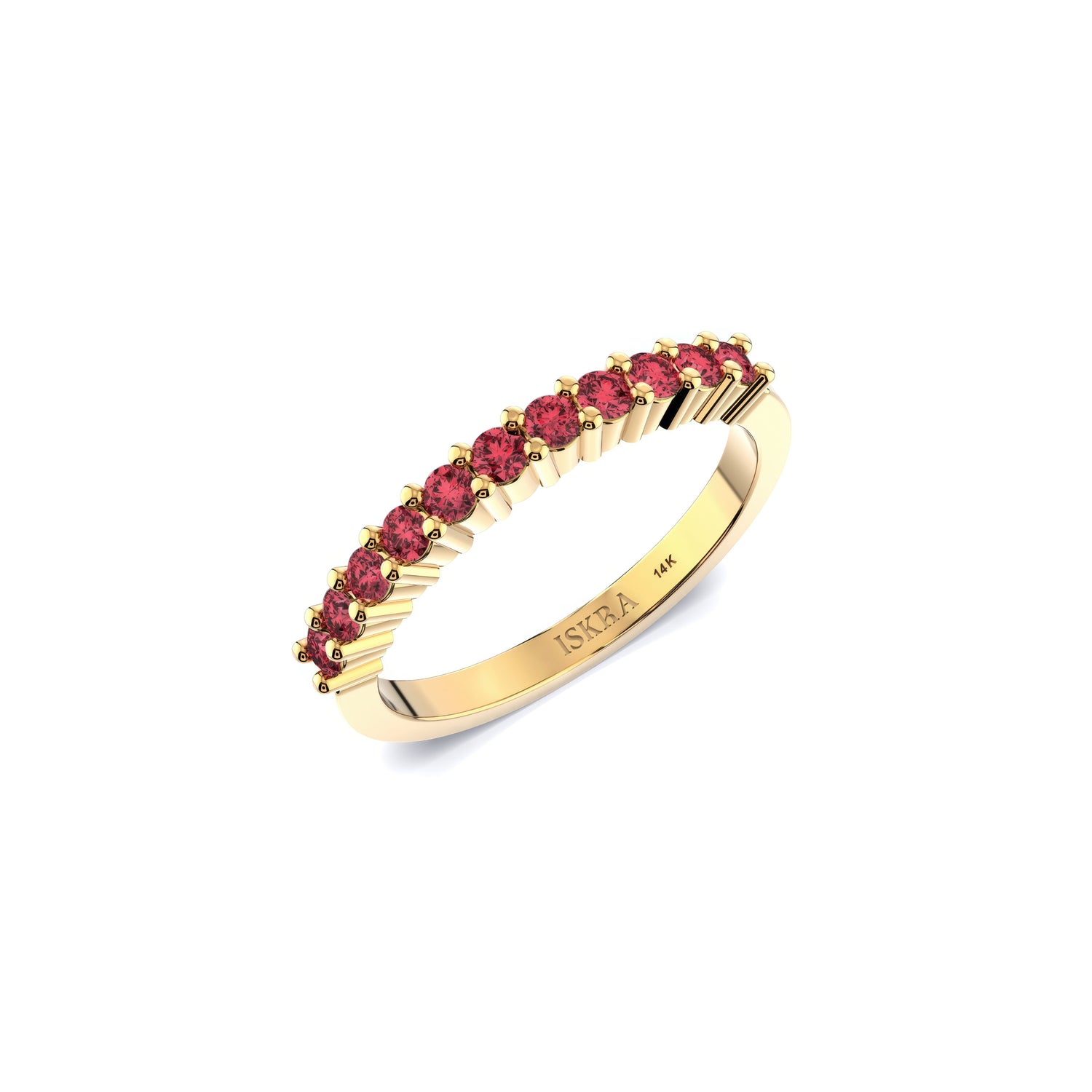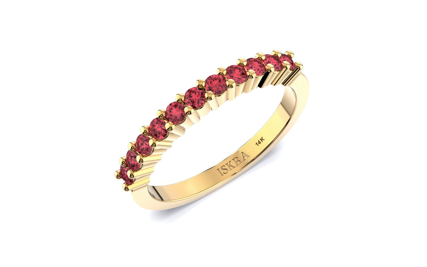 A simple design with deep meaning. The Ariana band ring features the vibrant Ruby — the birthstone for July — and a universal symbol of vitality and wealth accumulation. Expertly set in 14k Yellow, White, or Rose Gold, this ring is a meaningful birthstone gift that she can wear daily, whether stacked or solo.
