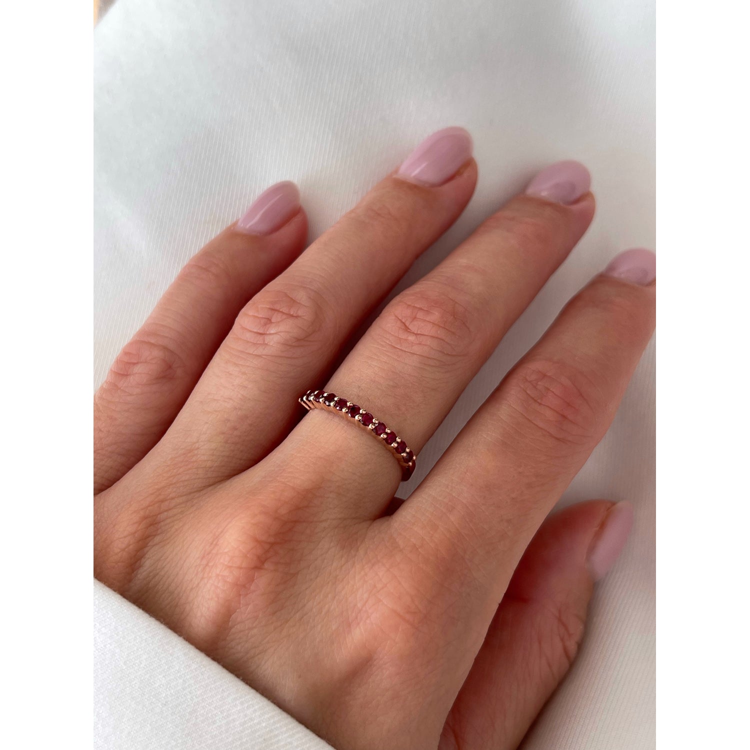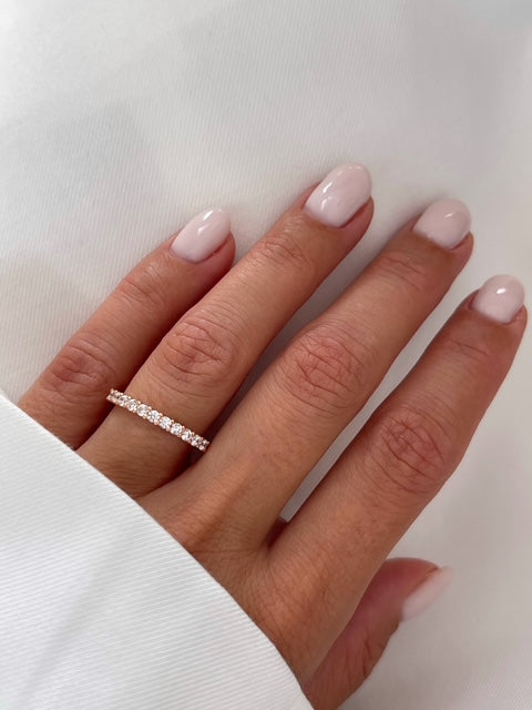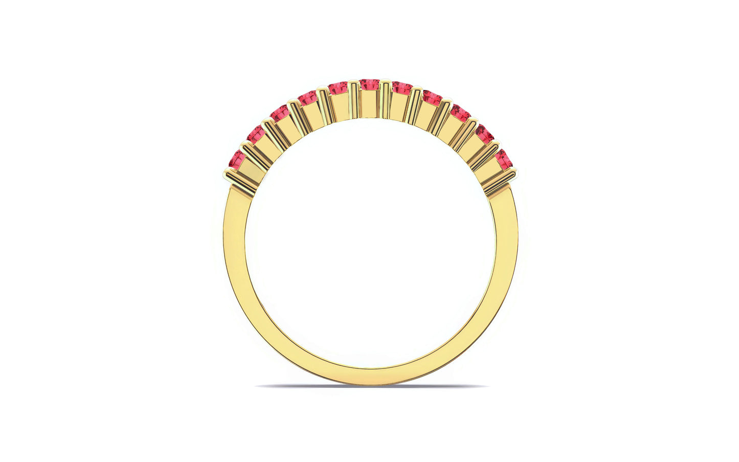 A simple design with deep meaning. The Ariana band ring features the vibrant Ruby — the birthstone for July — and a universal symbol of vitality and wealth accumulation. Expertly set in 14k Yellow, White, or Rose Gold, this ring is a meaningful birthstone gift that she can wear daily, whether stacked or solo.