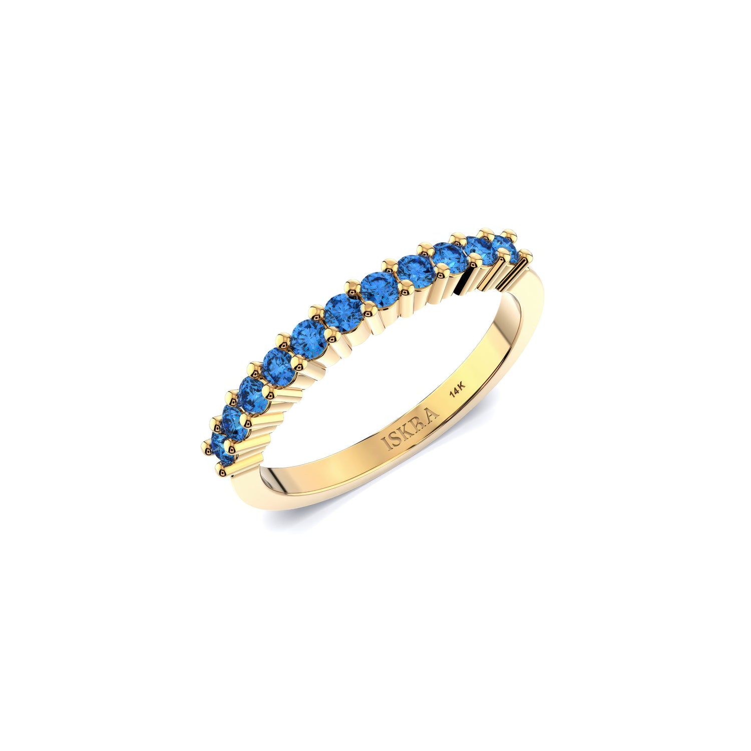 A simple design with deep meaning. The Ariana band ring features the vibrant Sapphire — the birthstone for September — and a universal symbol of wisdom and celestial truth. Expertly set in 14k Yellow, White, or Rose Gold, this ring is a meaningful birthstone gift that she can wear daily, whether stacked or solo.