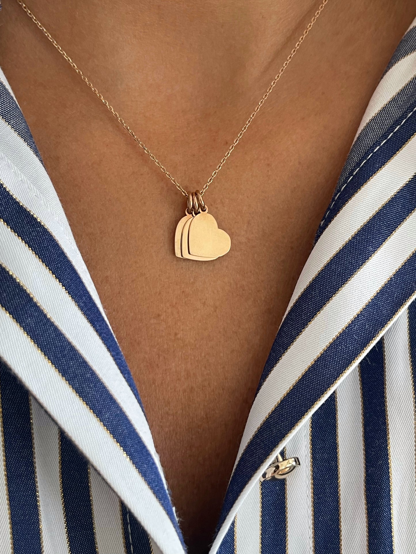 Meet the Personalized 3 Little Heart Necklace, made to celebrate the most special people in your life. This charming design features three delicate layered heart pendants, each engraved with a personalized initial — a beautiful way to keep loved ones close. Expertly crafted in 14k Yellow, White, or Rose Gold, it’s a meaningful and timeless piece that’s sure to be cherished every day.
