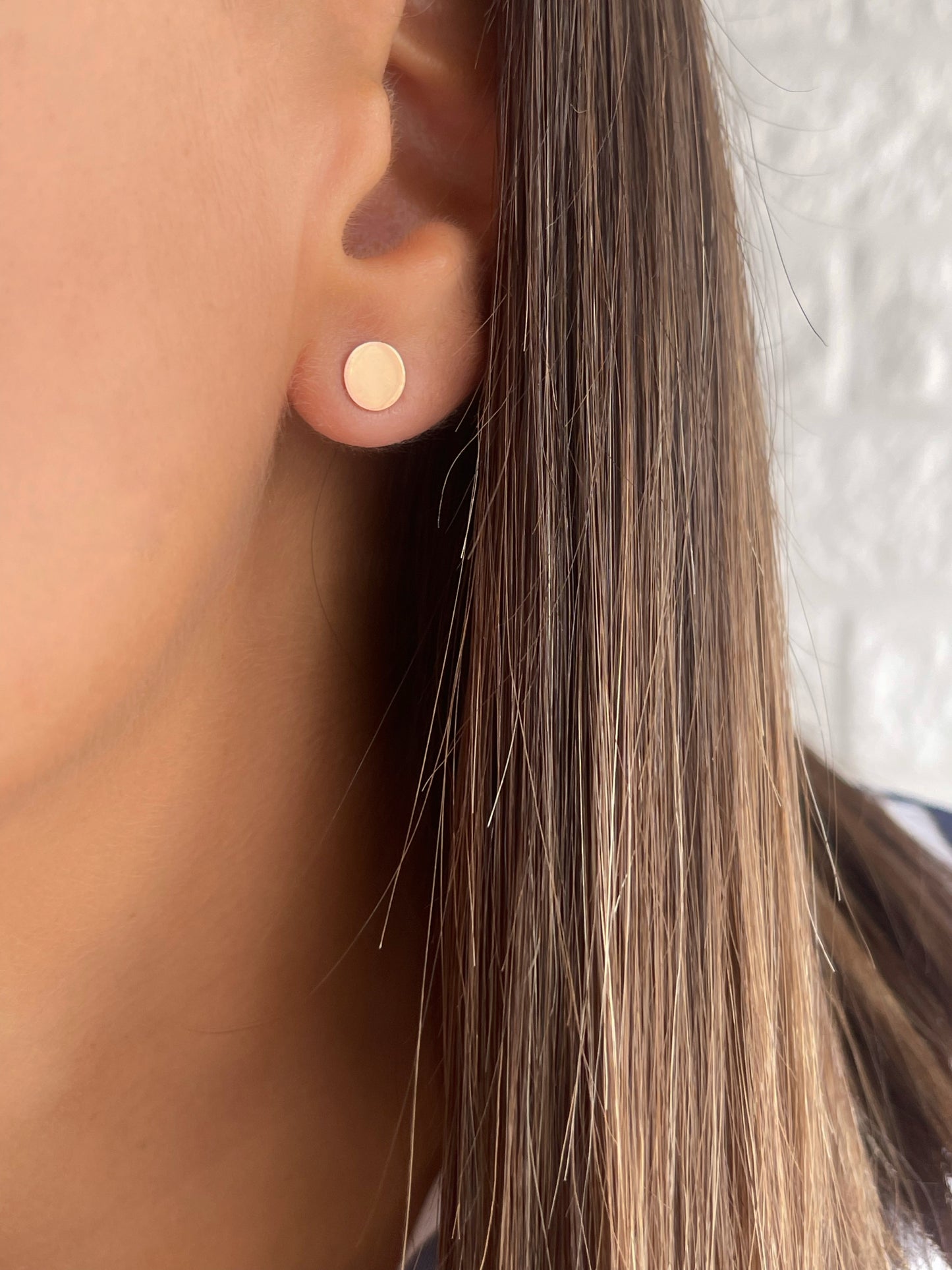 Meet the Personalized Disc Earrings, a timeless treasure made just for someone special. This delicate pair features polished circular discs custom-engraved with your chosen initial or monogram. Expertly made in 14k yellow, white, or rose gold, these earrings are a stunning yet sentimental piece — perfect for everyday wear, whether you choose them for yourself or as a meaningful gift she’ll cherish.