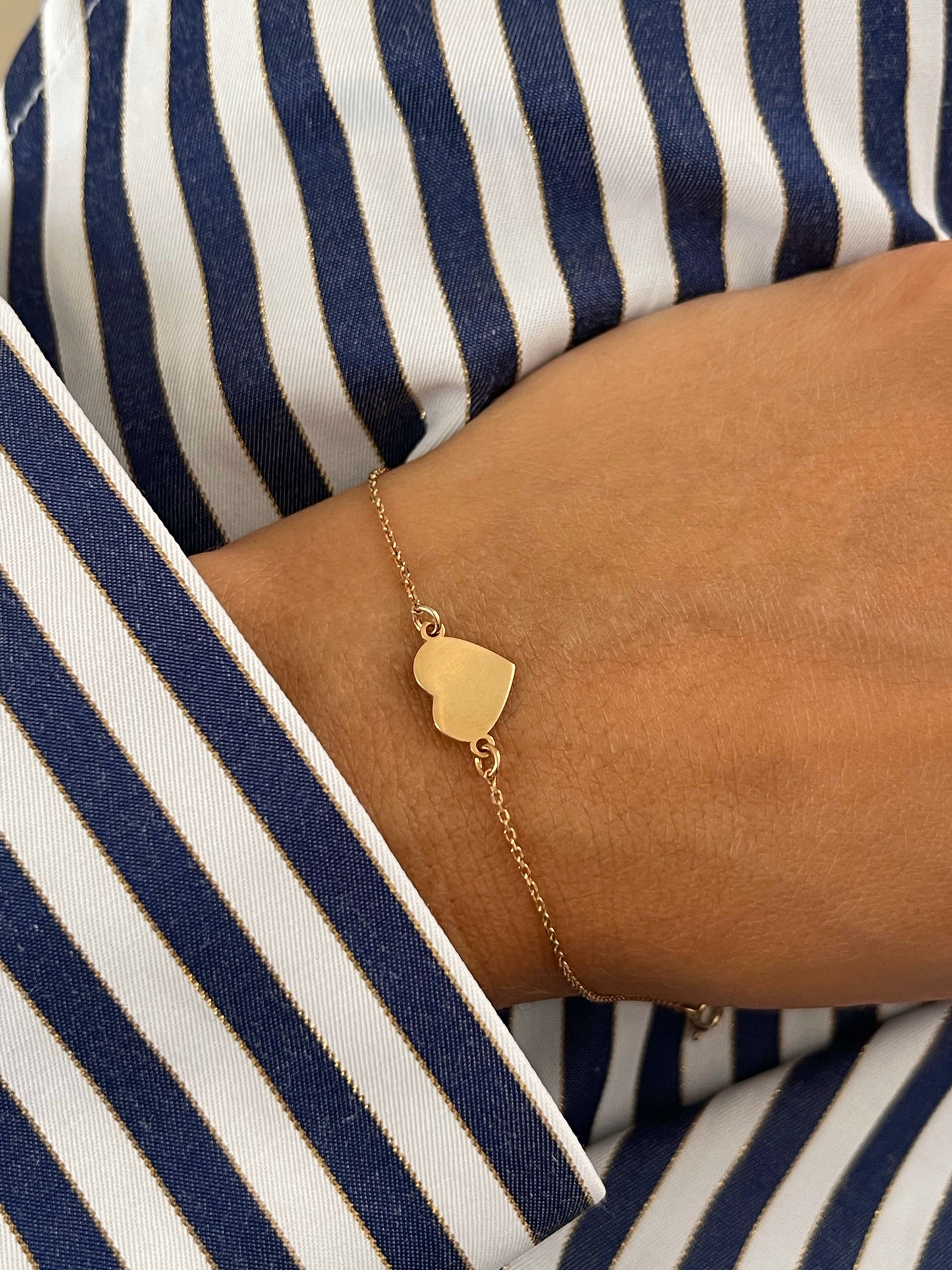 Meet the Personalized Heart Bracelet, a deeply cherished piece designed for that special person in your life. This charming design features a beautiful heart pendant, which can be engraved with initials of your choice—a subtle yet powerful way to keep someone dear to you close. Expertly crafted in your choice of 14k Yellow, White, or Rose Gold, it is a meaningful heirloom piece she will never want to take off.