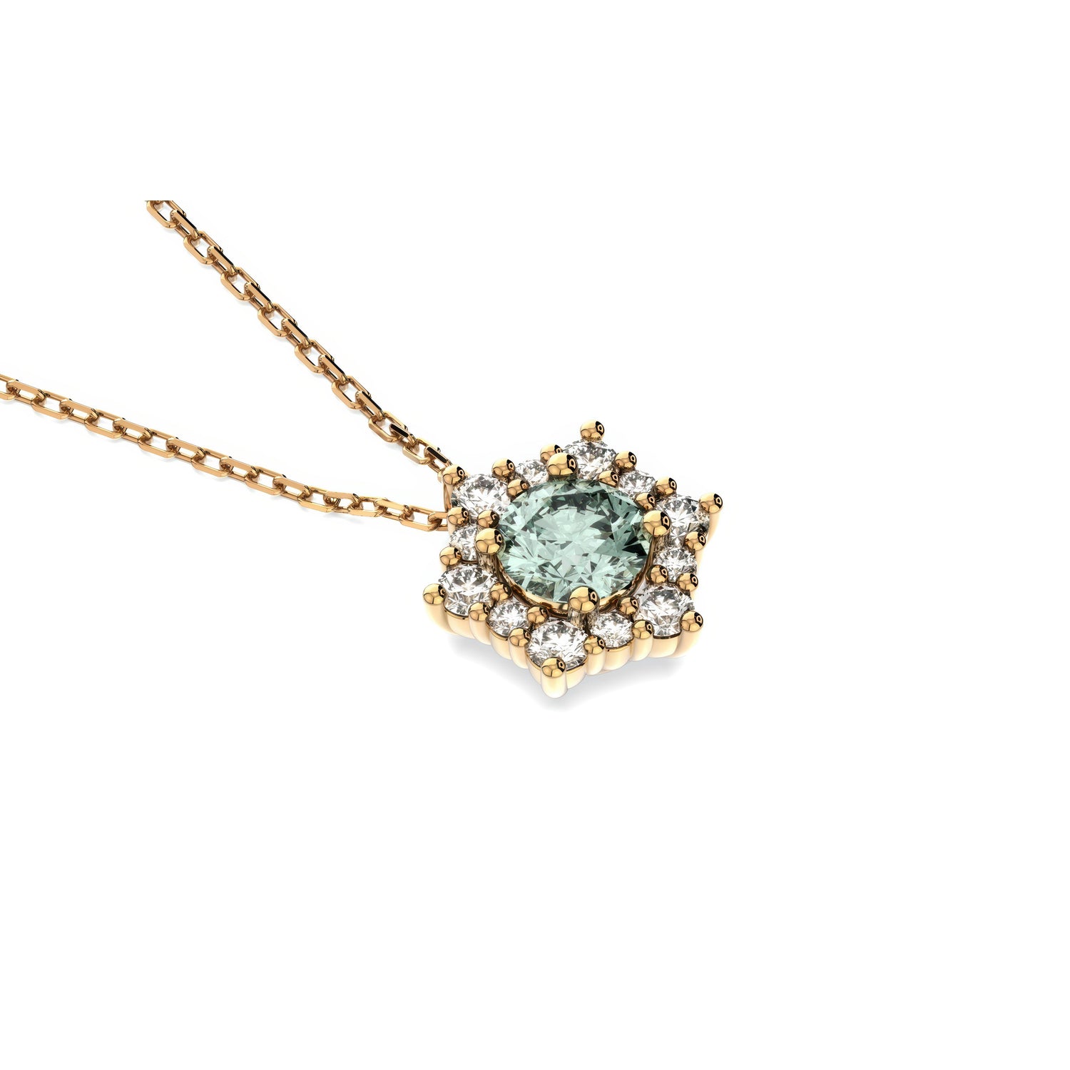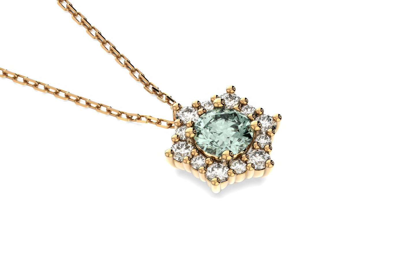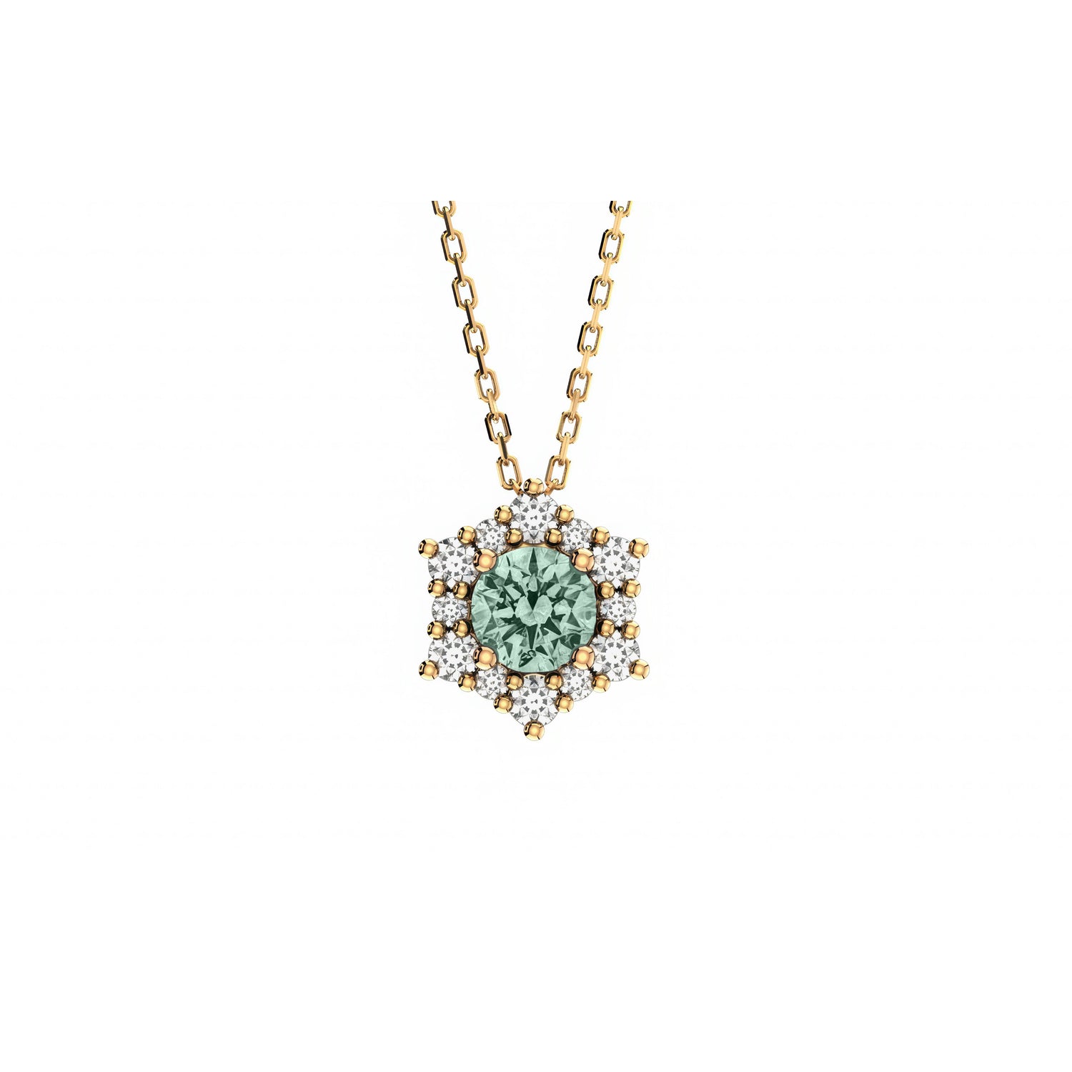 Prepare to shine in the Valentina necklace. The magic of this piece lies in its centerpiece — a luminous Alexandrite, June’s birthstone and the stone of adaptability and good fortune. Framed by a halo of shimmering diamonds, it captures the look and brilliance of a much larger solitaire. Expertly set in 14k Yellow, White, or Rose Gold, it's the perfect piece – striking enough to stand on its own, yet refined enough to layer with your other minimalistic necklaces.