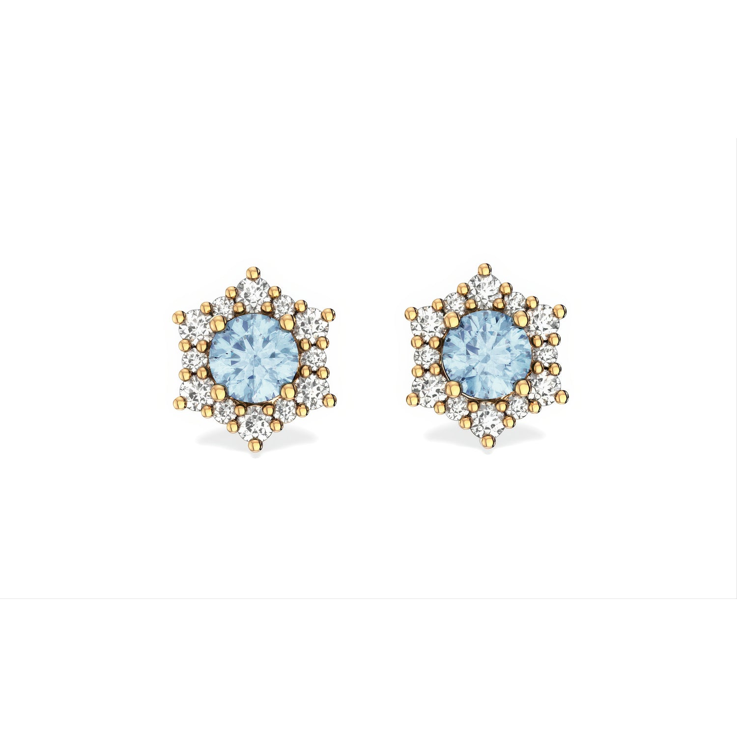 Prepare to shine in the Valentina earrings. The magic of this pair lies in its luminous Aquamarine centerpieces — March’s birthstone and the stone of protection (especially for travelers) and serenity. Each birthstone is framed by a halo of shimmering diamonds, giving the impression of a much larger solitaire. Expertly set in 14k yellow, white, or rose gold, these earrings bring just the right balance of sparkle and sophistication.