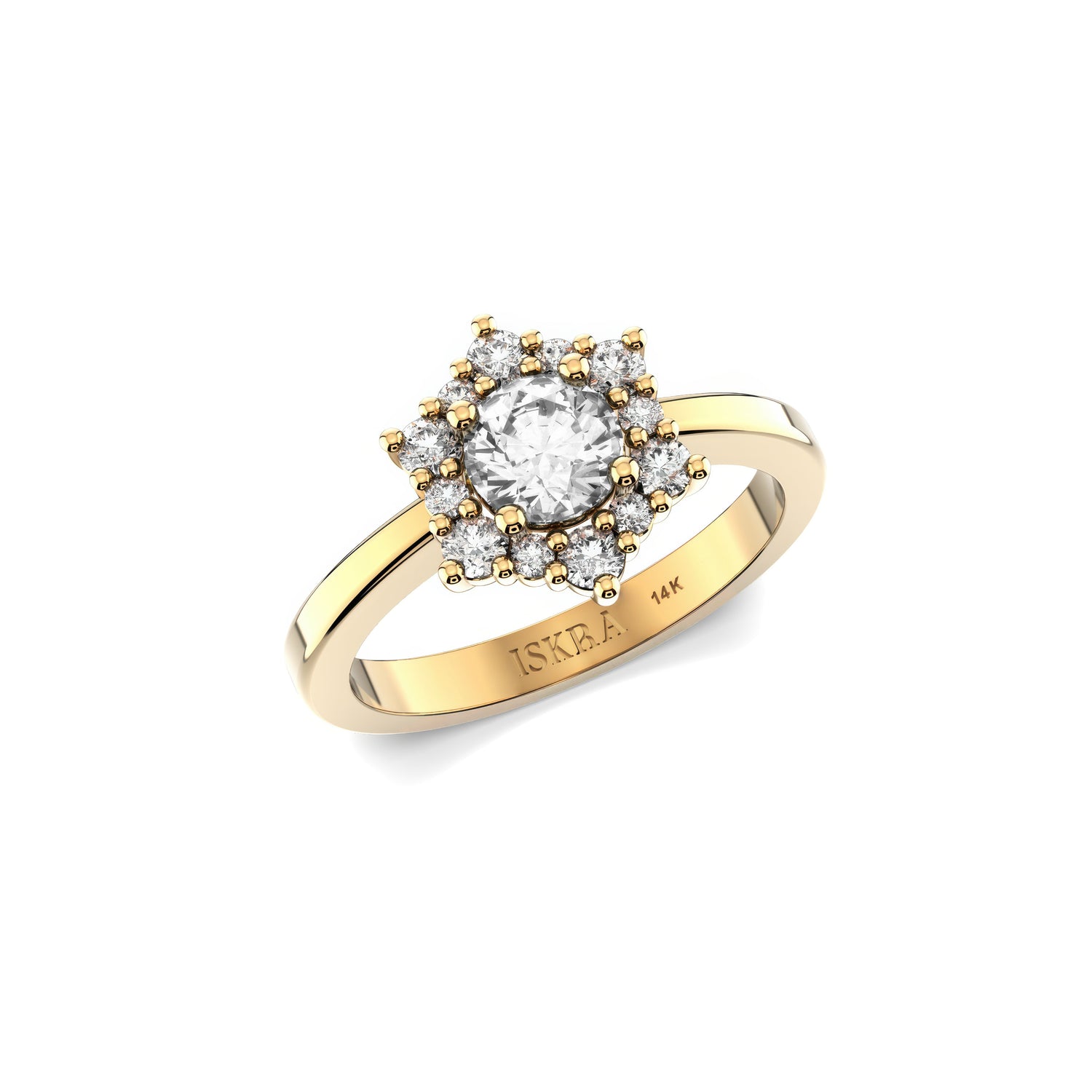 Valentina 12 Diamonds with Central Birthstone Diamond Ring in 14k Gold