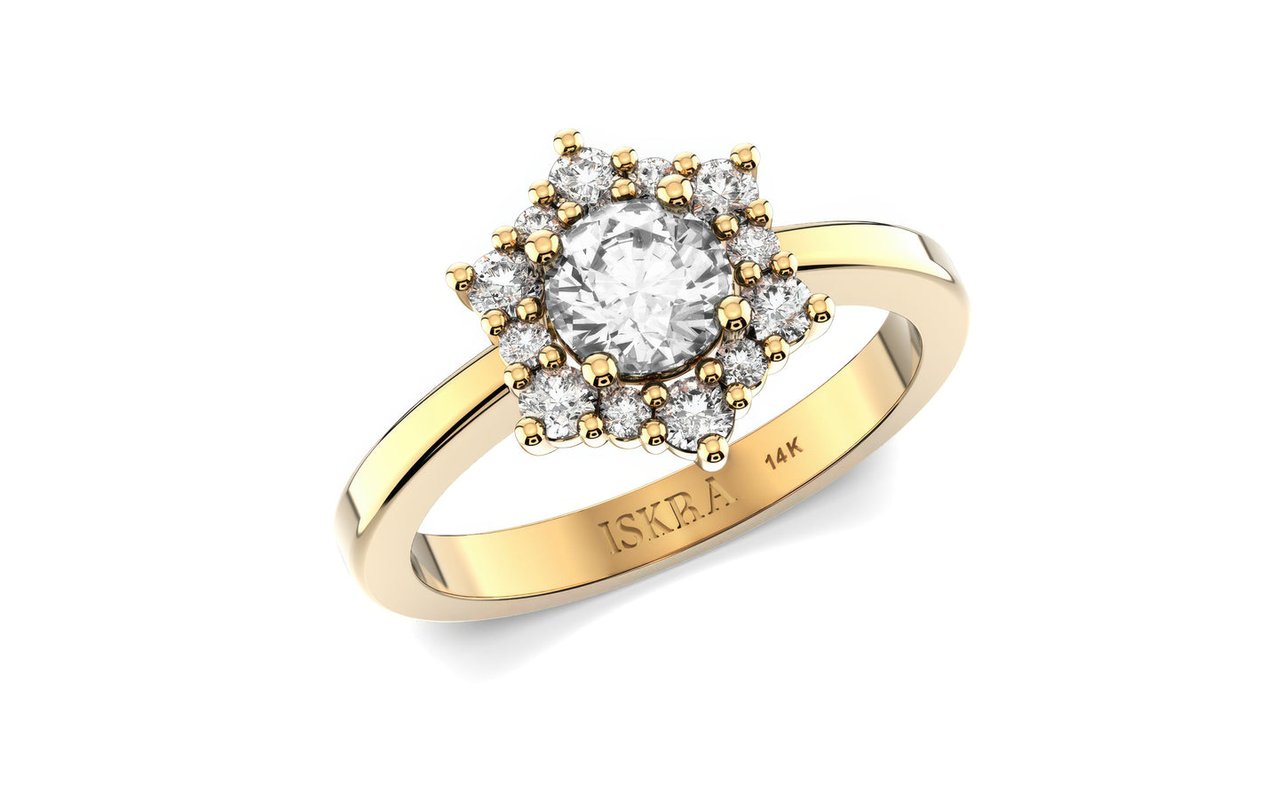 Prepare to attract attention in the Valentina ring. At its heart is a radiant Diamond, April’s birthstone and the stone of eternal strength and clarity. A halo of diamonds surrounds the birthstone, amplifying its glow and creating the look of a larger solitaire. Expertly set in 14k Yellow, White, or Rose Gold, it's the perfect piece — stunning as its own, or paired with your other treasured pieces.