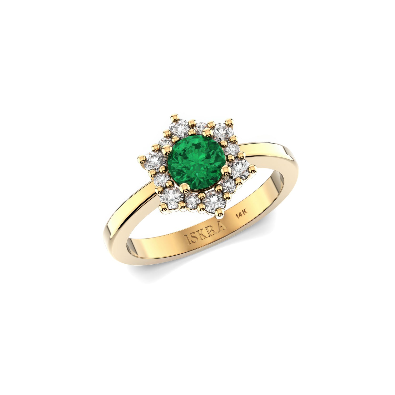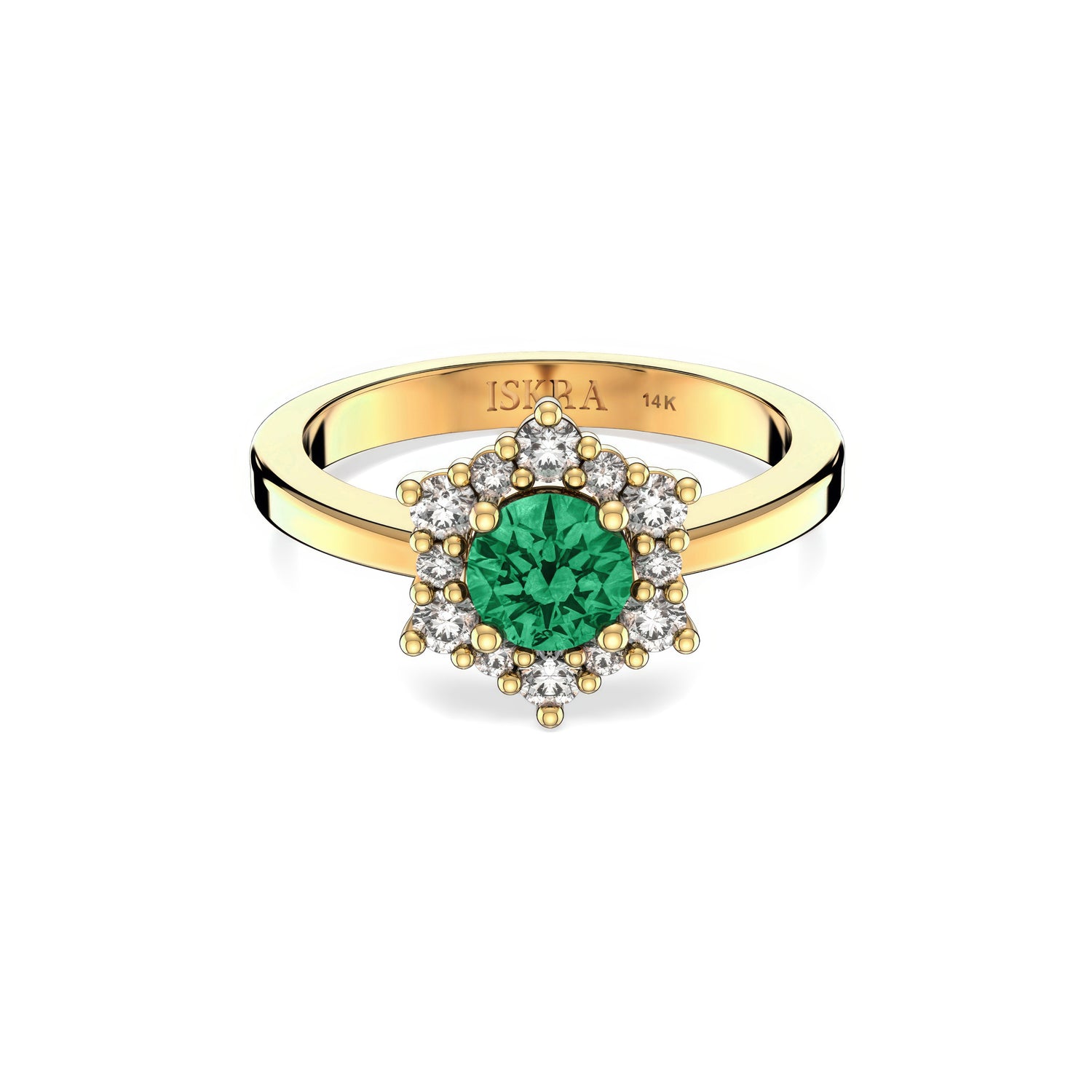 Valentina 12 Diamonds with Central Birthstone Emerald Ring in 14k Gold