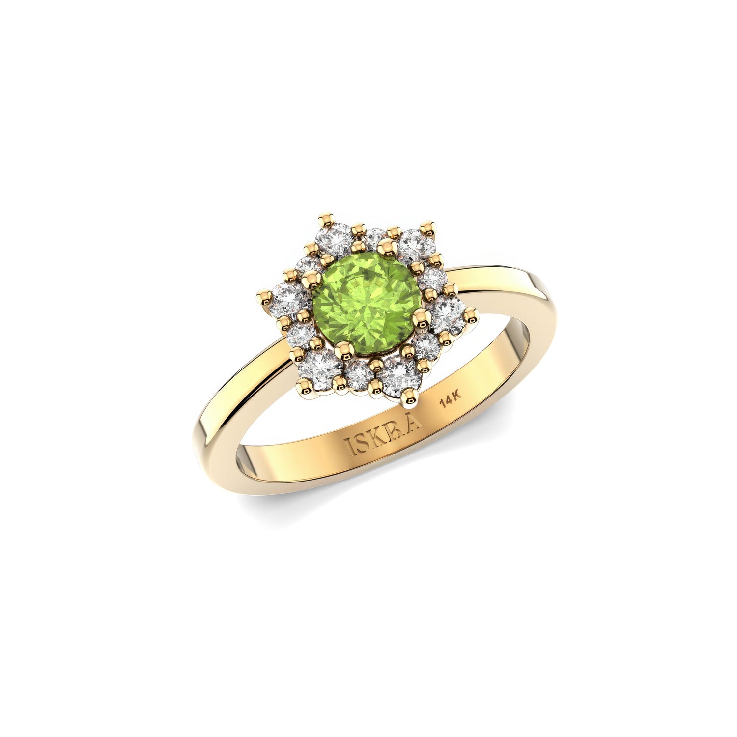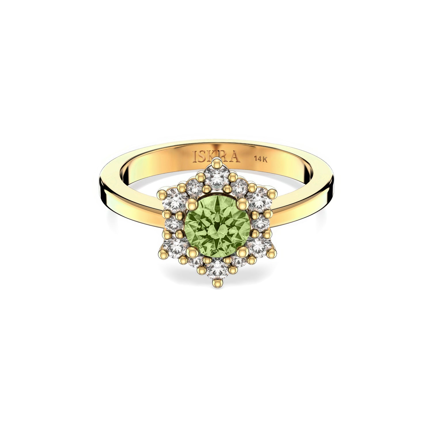 Valentina 12 Diamonds with Central Birthstone Peridot Ring in 14k Gold