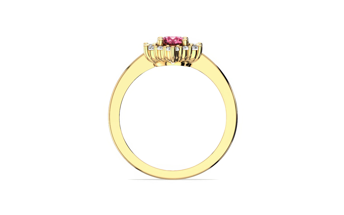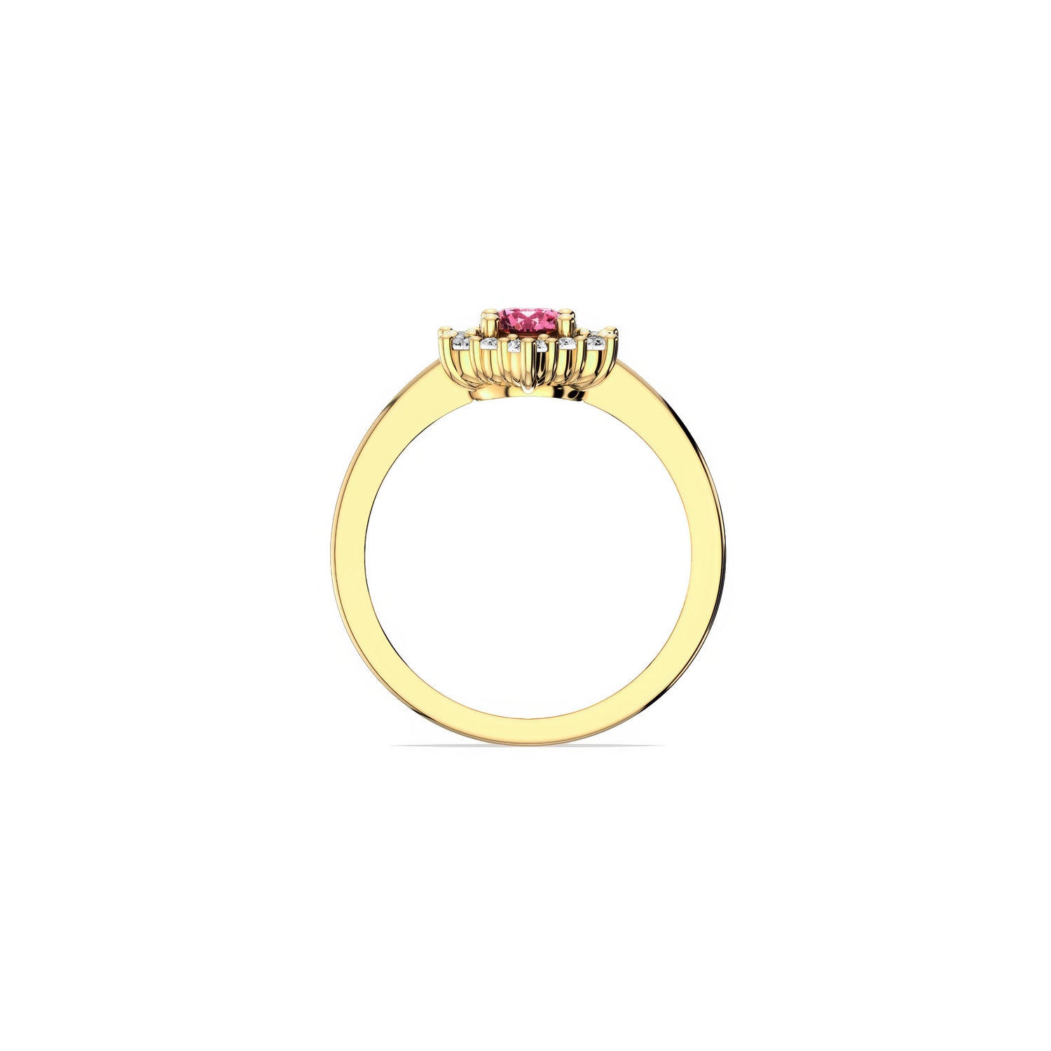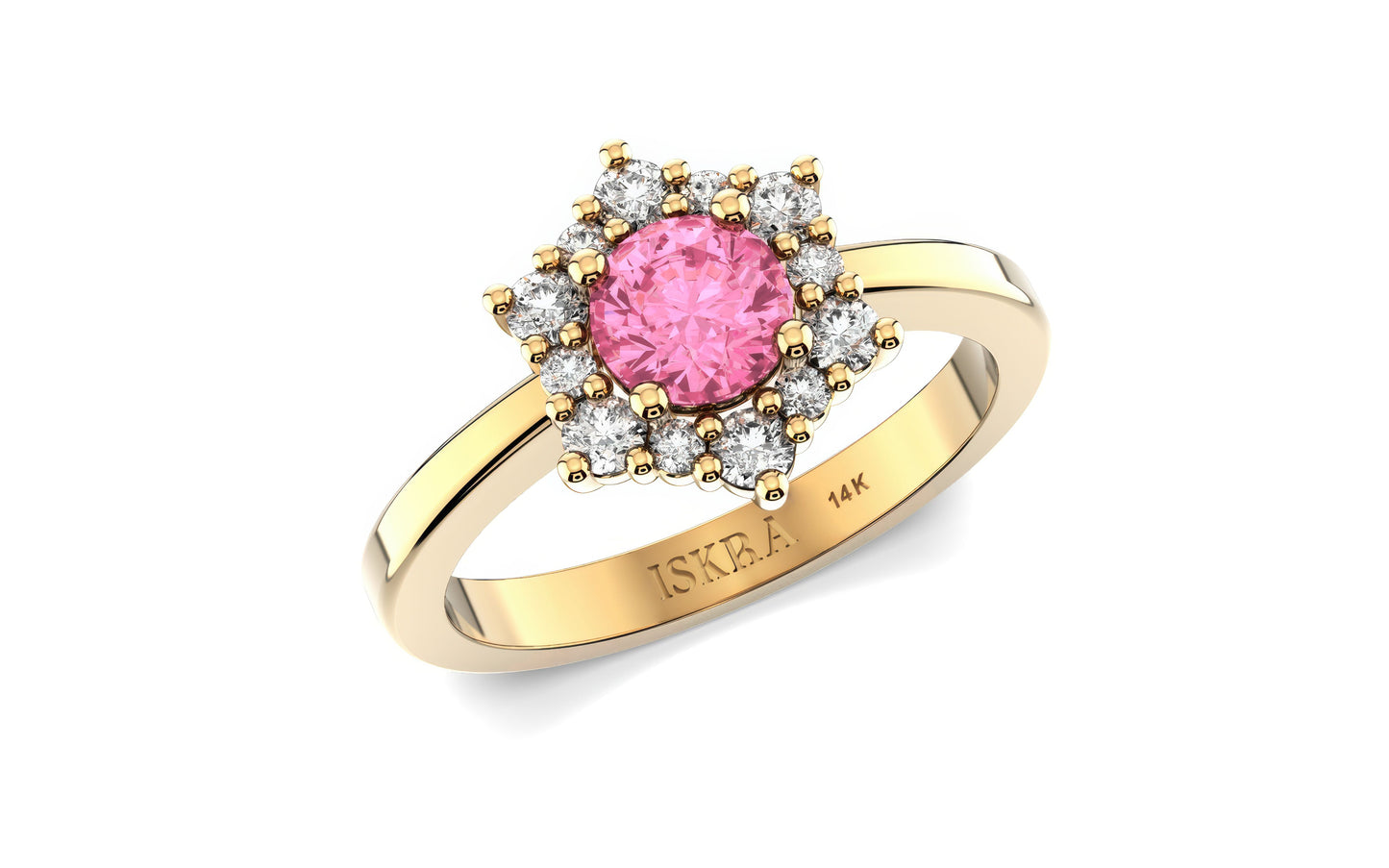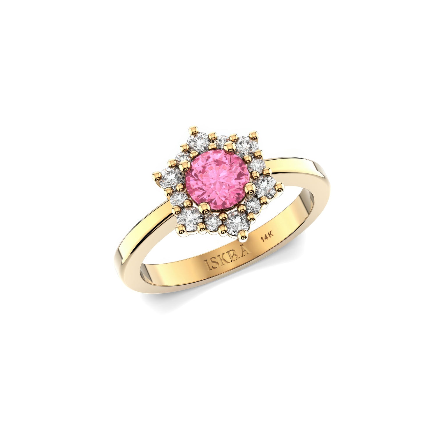 Valentina 12 Diamonds with Central Birthstone Pink Sapphire Ring in 14k Gold