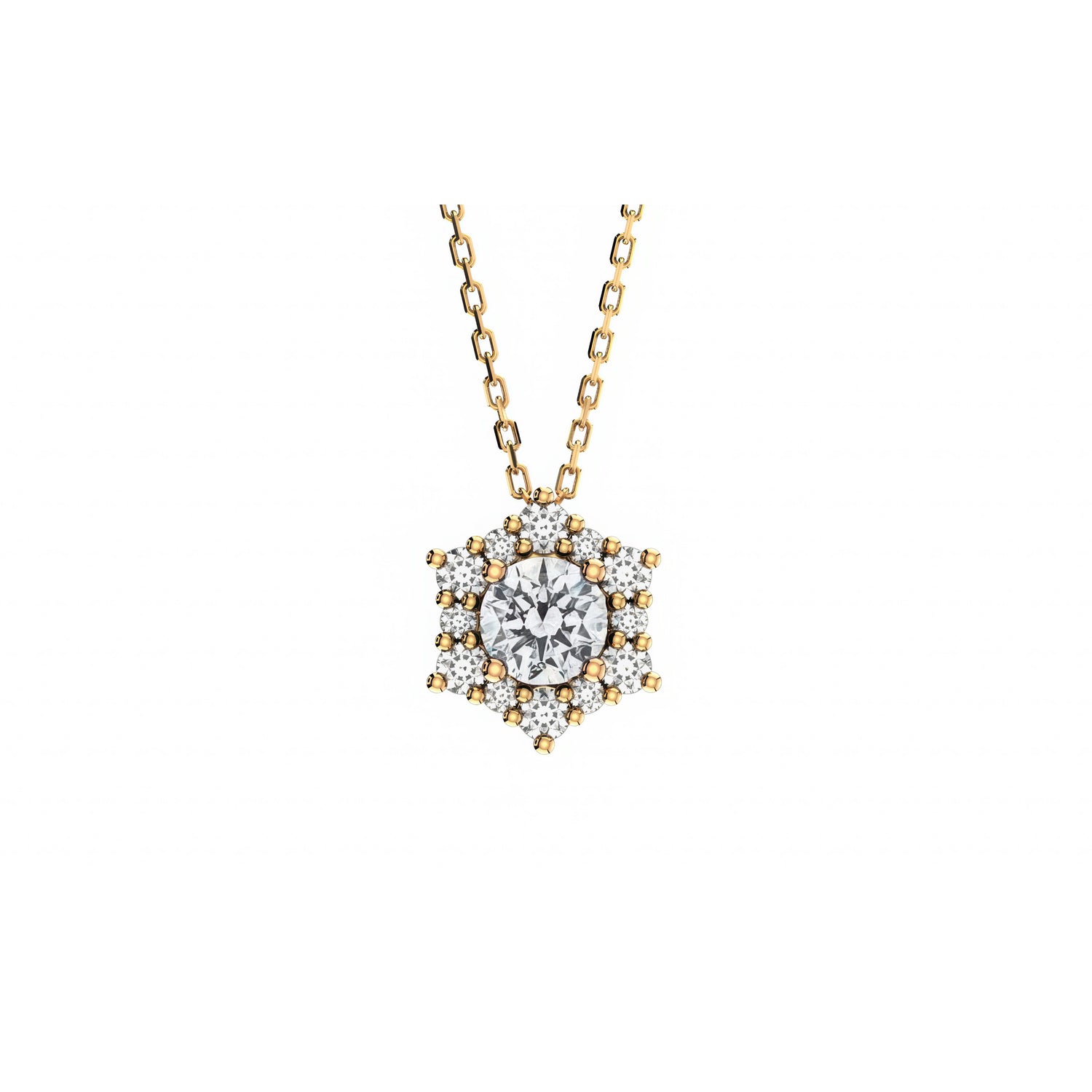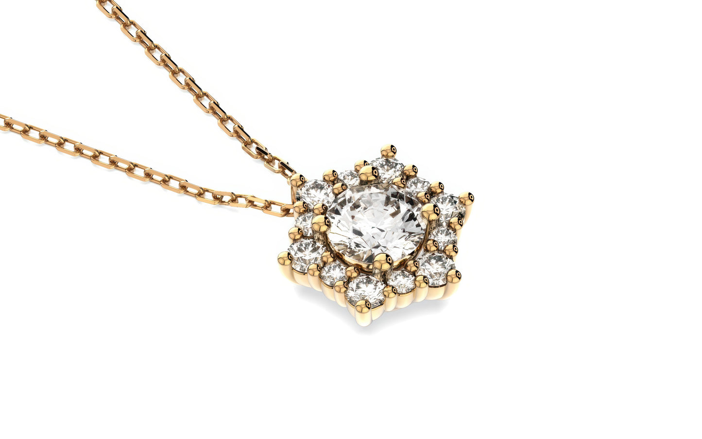 Prepare to shine in the Valentina necklace. The magic of this piece lies in its centerpiece — a luminous Diamond, April’s birthstone and the stone of eternal strength and clarity. Framed by a halo of shimmering diamonds, it captures the look and brilliance of a much larger solitaire. Expertly set in 14k Yellow, White, or Rose Gold, it's the perfect piece – striking enough to stand on its own, yet refined enough to layer with your other minimalistic necklaces.