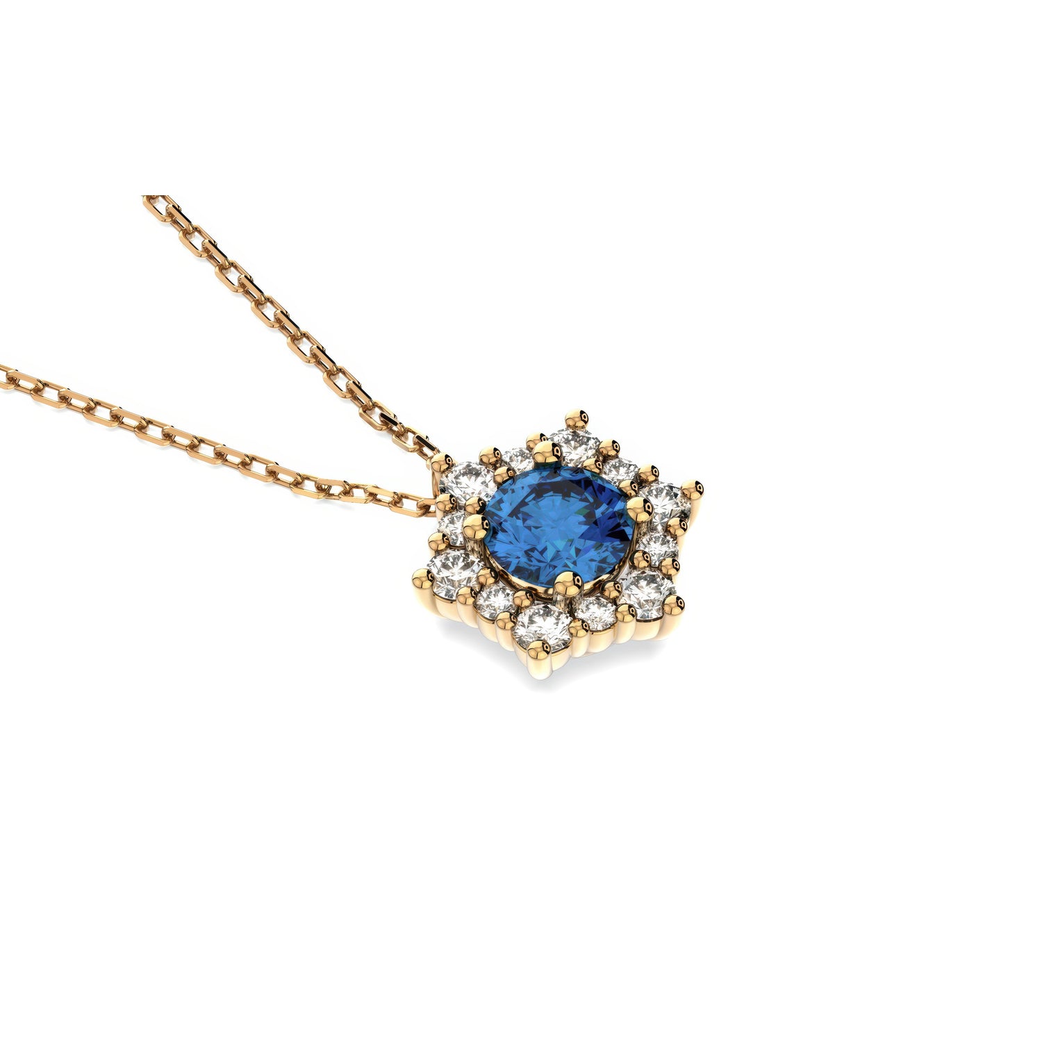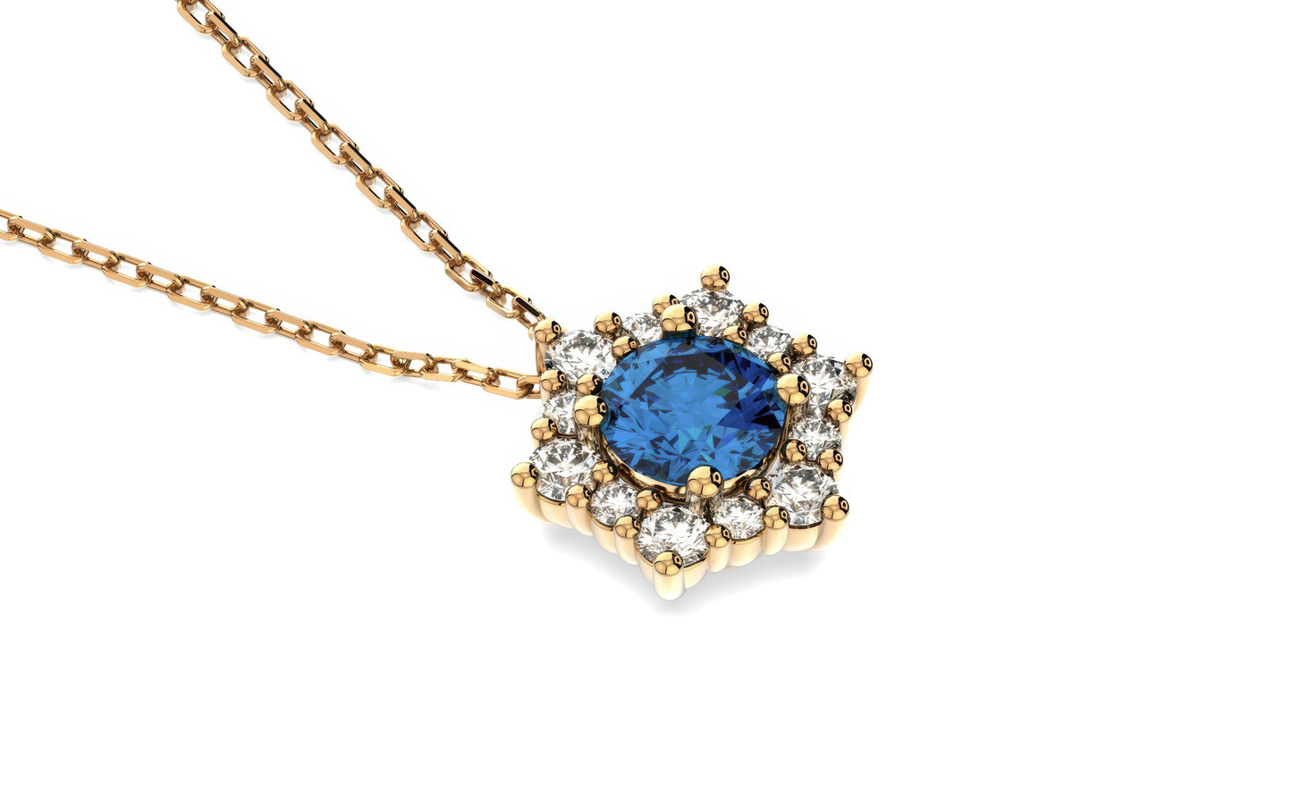 • Features a sustainably grown sapphire birthstone encircled by twelve sustainably grown round diamonds.